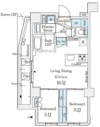 平米数 | 40.54m2 | 部屋詳細 | LDK10.5帖/洋室3.2帖/洋室3.1帖 |