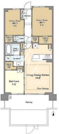 平米数 | 70.11m2 | 部屋詳細 | LDK14.8帖/洋室5帖/サービスルーム6.5帖/サービスルーム5帖 |