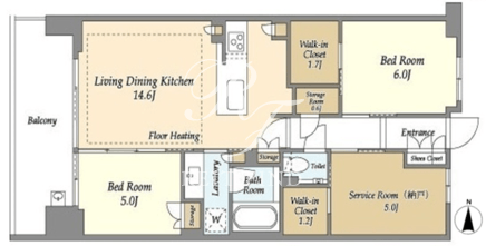 平米数 | 70.63m2 | 部屋詳細 | LDK14.6帖/洋室6帖/洋室5帖/サービスルーム5帖 |