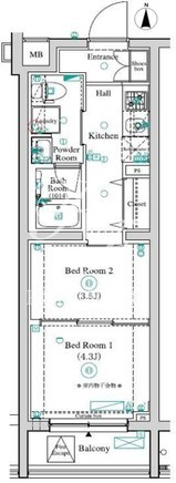 平米数 | 26.03m2 | 部屋詳細 | 洋室4.3帖/洋室3.5帖/K2帖 |