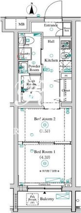 平米数 | 25.95m2 | 部屋詳細 | 洋室4.3帖/洋室3.5帖/K2帖 |