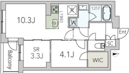 平米数 | 43.83m2 | 部屋詳細 | LDK10.3帖/洋室4.1帖/サービスルーム3.3帖 |