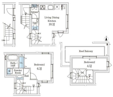 | 平米数 | 54.87m2 | 部屋詳細 | LDK10.3帖/洋室6.3帖/洋室4.5帖 |