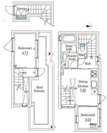 平米数 | 46.78m2 | 部屋詳細 | DK7.8帖/洋室4.7帖/洋室3帖 |