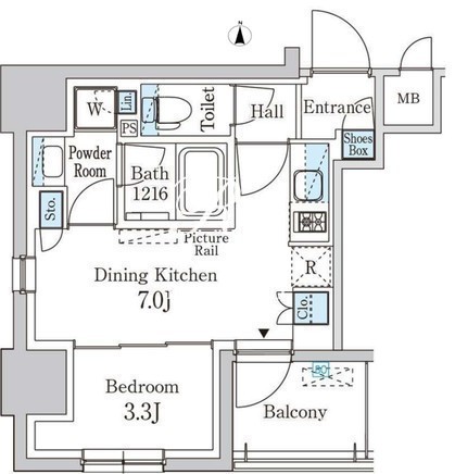 所在階/向き | 7階/南 | 間取り | 1DK |