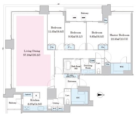 所在階/向き | 35階/西 | 間取り | 4LDK+WIC+SIC |
