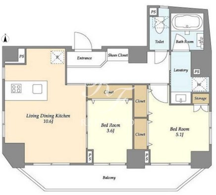 平米数 | 53.04m2 | 部屋詳細 | LDK10.6帖/洋室5.1帖/洋室3.6帖 |