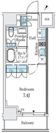 平米数 | 25.79m2 | 部屋詳細 | 洋室7.4帖/K2帖 |