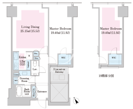 所在階/向き | 19階/北東 | 間取り | 1LDK+WIC |