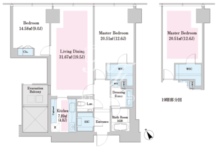 所在階/向き | 21階/北東 | 間取り | 2LDK+WIC+SIC |