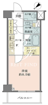 平米数 | 29.99m2 | 部屋詳細 | 洋室8.5帖/K2帖 |