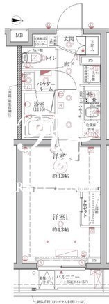 平米数 | 25.77m2 | 部屋詳細 | 洋室4.3帖/洋室3.3帖/K2帖 |