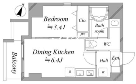 | 平米数 | 25.87m2 | 部屋詳細 | DK6.4帖/洋室3.4帖 |