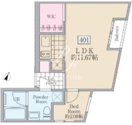 所在階/向き | 4階/北東 | 間取り | 1LDK+WIC |
