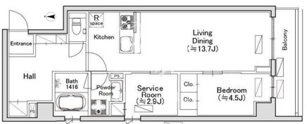 平米数 | 53.63m2 | 部屋詳細 | LDK15.7帖/洋室4.5帖/サービスルーム2.9帖 |