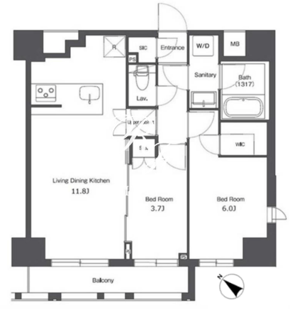 所在階/向き | 6階/南西 | 間取り | 2LDK+WIC+SIC |