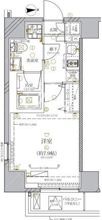 平米数 | 25.71m2 | 部屋詳細 | 洋室7.9帖/K2帖 |