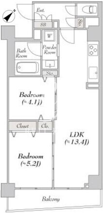 平米数 | 51.20m2 | 部屋詳細 | LDK13.4帖/洋室5.2帖/洋室4.1帖 |