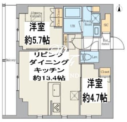 平米数 | 51.82m2 | 部屋詳細 | LDK13.4帖/洋室5.7帖/洋室4.7帖 |