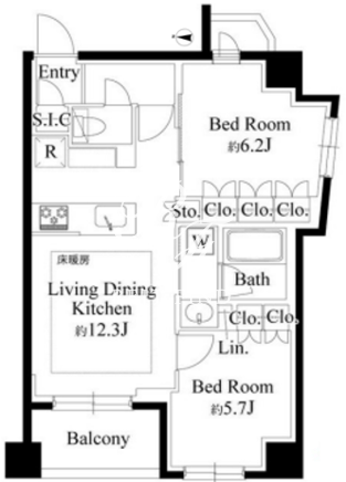 平米数 | 53.70m2 | 部屋詳細 | LDK12.3帖/洋室6.2帖/洋室5.7帖 |