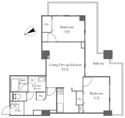 平米数 | 60.47m2 | 部屋詳細 | LDK12.5帖/洋室5.5帖/洋室5帖 |