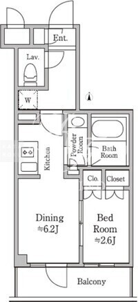 | 平米数 | 25.81m2 | 部屋詳細 | DK6.2帖/洋室2.6帖 |