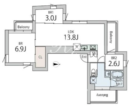 平米数 | 57.58m2 | 部屋詳細 | LDK13.8帖/洋室6.9帖/洋室3帖/洋室2.6帖 |