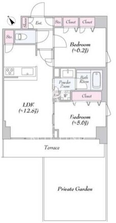 | 平米数 | 57.02m2 | 部屋詳細 | LDK12.8帖/洋室6.2帖/洋室5.6帖 |
