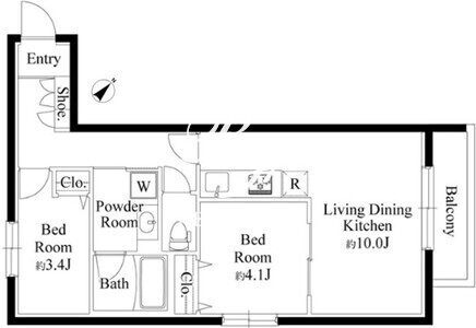 | 平米数 | 43.05m2 | 部屋詳細 | LDK10帖/洋室4.1帖/洋室3.4帖 |