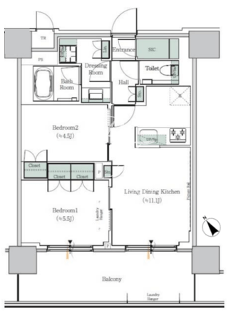 | 平米数 | 51.80m2 | 部屋詳細 | LDK11.1帖/洋室5.5帖/洋室4.5帖 |
