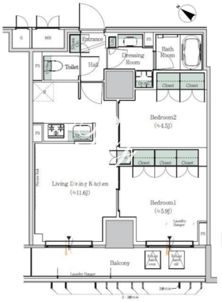 | 平米数 | 50.23m2 | 部屋詳細 | LDK11.6帖/洋室5.9帖/洋室4.5帖 |