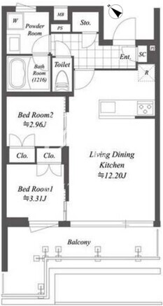 平米数 | 43.82m2 | 部屋詳細 | LDK12.2帖/洋室3.31帖/洋室2.96帖 |