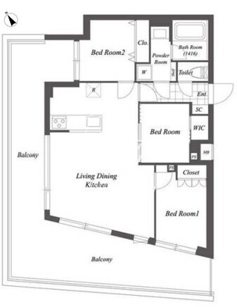 間取/面積 | 2LDK+WIC/57.79m2 |