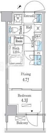 | 所在階/向き | 4階/北西 | 間取り | 1DK |