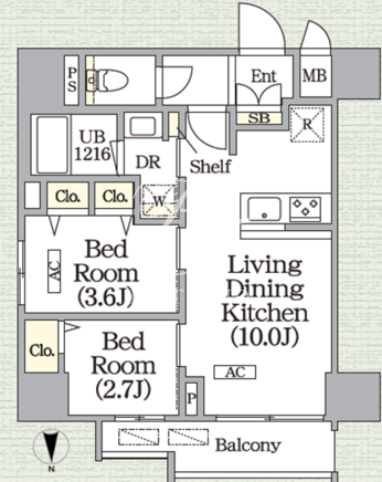 平米数 | 40.29m2 | 部屋詳細 | LDK10帖/洋室3.6帖/洋室2.7帖 |