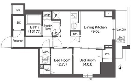 間取/面積 | 2DK+SIC+WIC/40.03m2 |