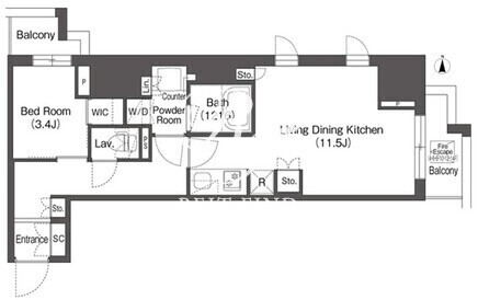 平米数 | 41.86m2 | 部屋詳細 | LDK11.5帖/洋室3.4帖 |