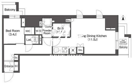 平米数 | 41.86m2 | 部屋詳細 | LDK11.5帖/洋室3.4帖 |