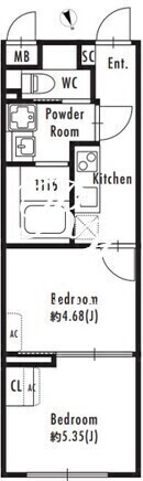 | 平米数 | 30.30m2 | 部屋詳細 | 洋室5.35帖/洋室4.68帖/K2帖 |