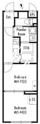 | 平米数 | 30.30m2 | 部屋詳細 | 洋室5.44帖/洋室4.75帖/K2帖 |