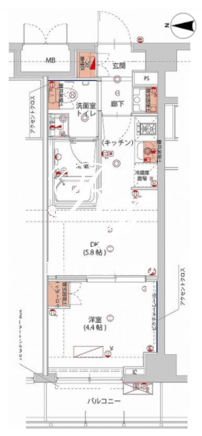 平米数 | 25.80m2 | 部屋詳細 | DK5.8帖/洋室4.4帖 |