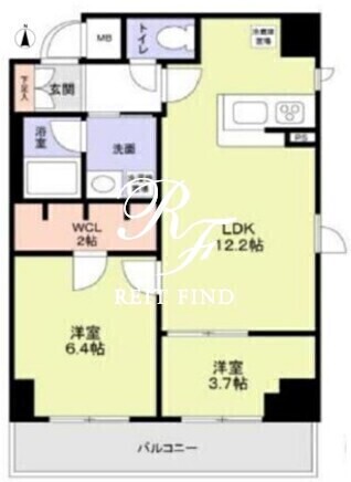 平米数 | 49.75m2 | 部屋詳細 | LDK12.2帖/洋室6.4帖/洋室3.7帖 |
