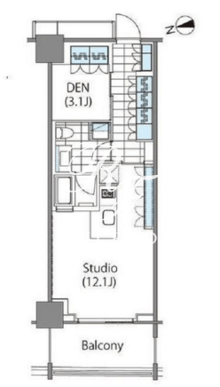 平米数 | 42.51m2 | 部屋詳細 | 洋室12.1帖/DEN3.1帖 |