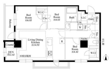 平米数 | 74.49m2 | 部屋詳細 | LDK14.9帖/洋室6帖/洋室4.4帖/洋室4帖/DEN2.4帖 |