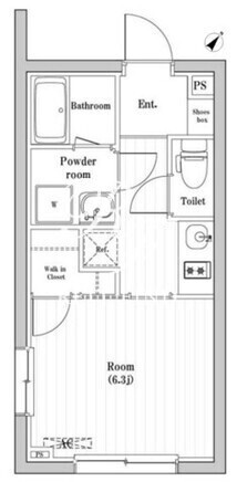 平米数 | 23.63m2 | 部屋詳細 | 洋室6.3帖/K2帖 |