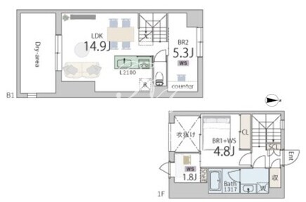 平米数 | 62.70m2 | 部屋詳細 | LDK14.9帖/洋室5.3帖/洋室4.8帖/洋室1.8帖 |