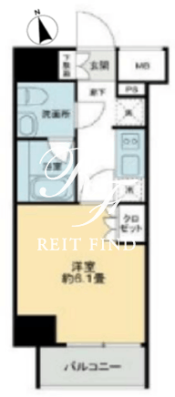 平米数 | 22.50m2 | 部屋詳細 | 洋室6.1帖/K2帖 |