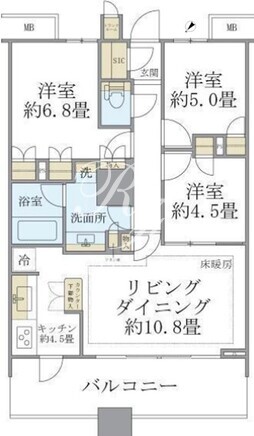 所在階/向き | 8階/北西 | 間取り | 3LDK+SIC |