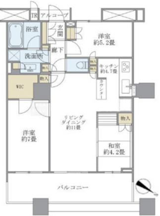 | 平米数 | 71.71m2 | 部屋詳細 | LDK15.7帖/洋室7帖/洋室5.2帖/和室4.2帖 |