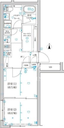 平米数 | 32.86m2 | 部屋詳細 | 洋室7.1帖/洋室5.7帖/K2帖 |